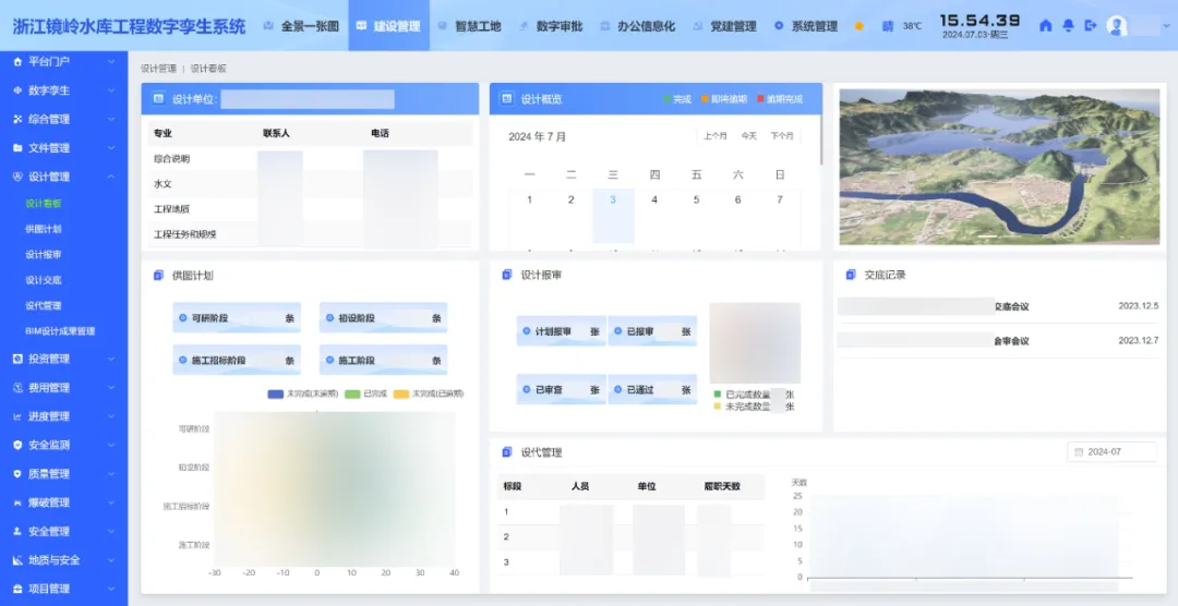 本系统包括设计管理、投资管理、费用管理、进度管理、质量管理和安全管理等模块,形成的建设期相关数字资产,为运维期提供项目信息采集、实时汇总、动态把控、超前预测等数据资产全面支撑。
